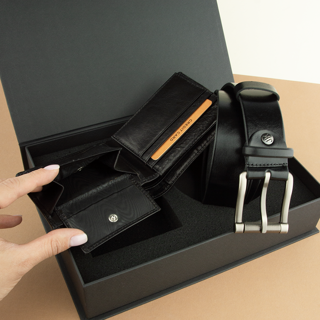 Оба аксессуара стильно представлены в подарочной коробке с магнитной застёжкой, что делает набор идеальным подарком на день рождения, юбилей или любой другой особенный повод.
